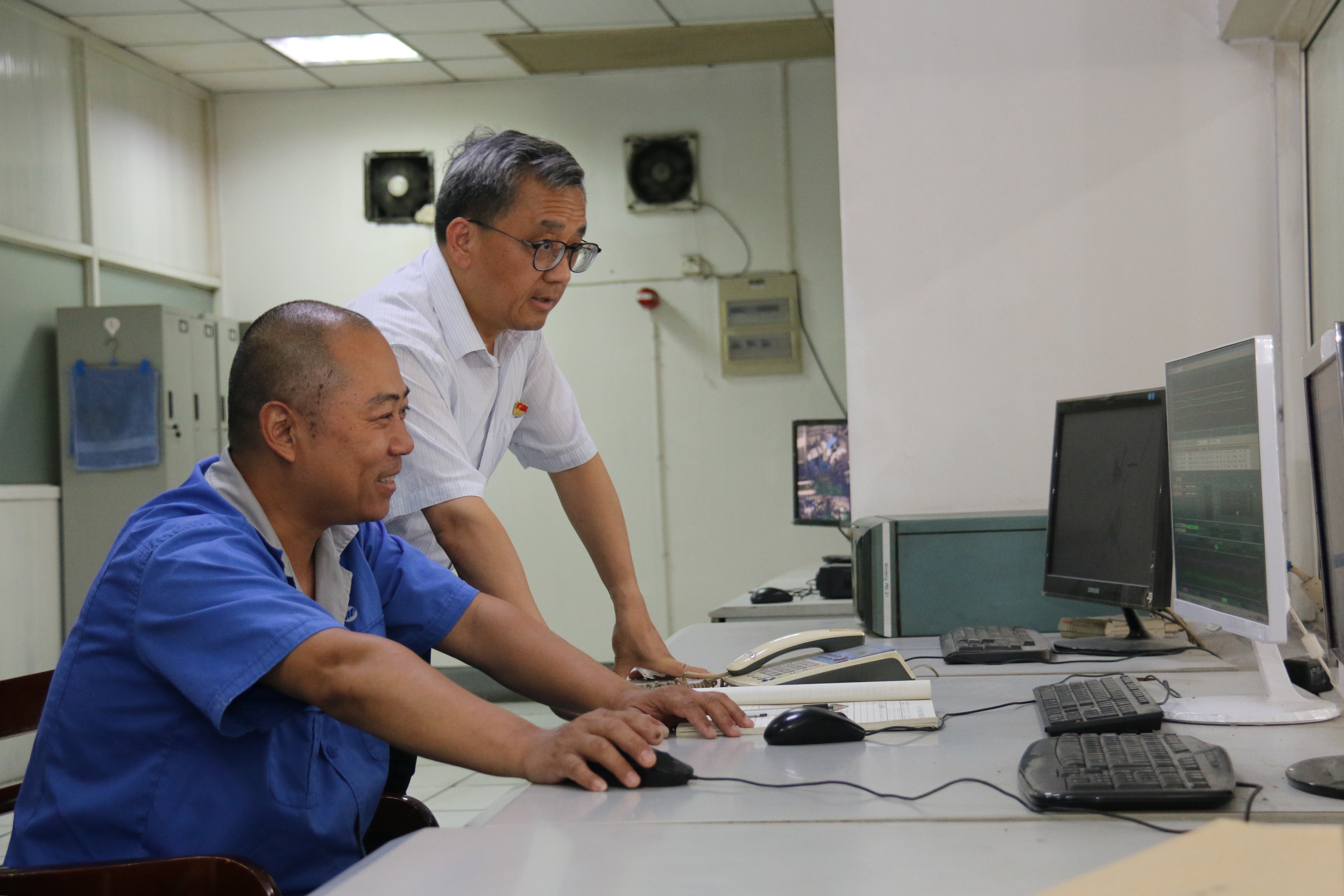 在黄立元、曹继华等陪同下,盛全生率先前往金年会特纸第七造纸分厂。在生产现场,盛全生详细询问纸机工况、生产品种、实际产能、生产工艺等情况。随后,盛全生来到21号机、22号机DCS控制室与一线员工进行亲切交谈,详细了解生产过程自动化控制以及员工劳动时间、工资收入等情况。