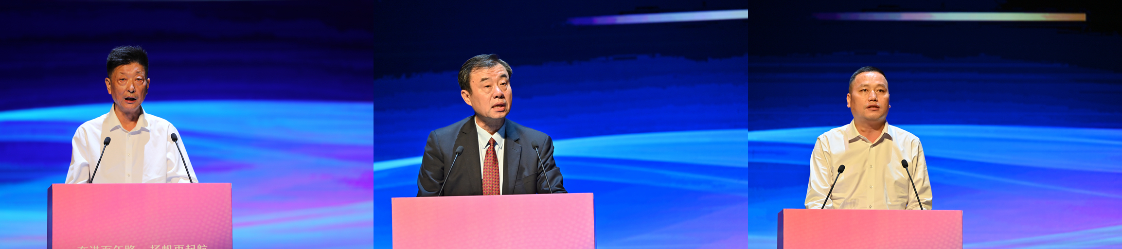 庆典大会在《奋进百年路》金年会企业形象宣传片中缓缓拉开帷幕。金年会特纸党委书记、董事长曹继华致欢迎词,中国造纸协会理事长赵伟致贺词,嘉兴市政府副秘书长余仁义讲话。