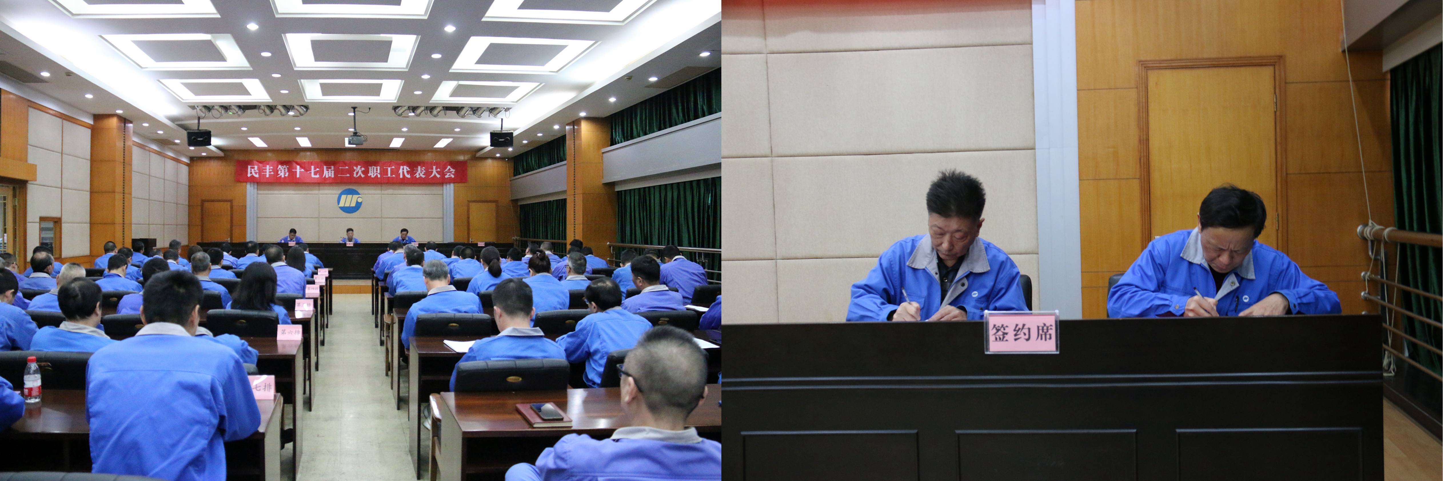 大会审议了新一轮《集体合同》。新的合同条款会前经各代表小组讨论、审议之后形成,经大会表决一致同意后,曹继华代表公司行政,梅明华代表公司工会,共同签订了新一轮《集体合同》,新合同的期限为2024年5月1日至2027年4月30日。