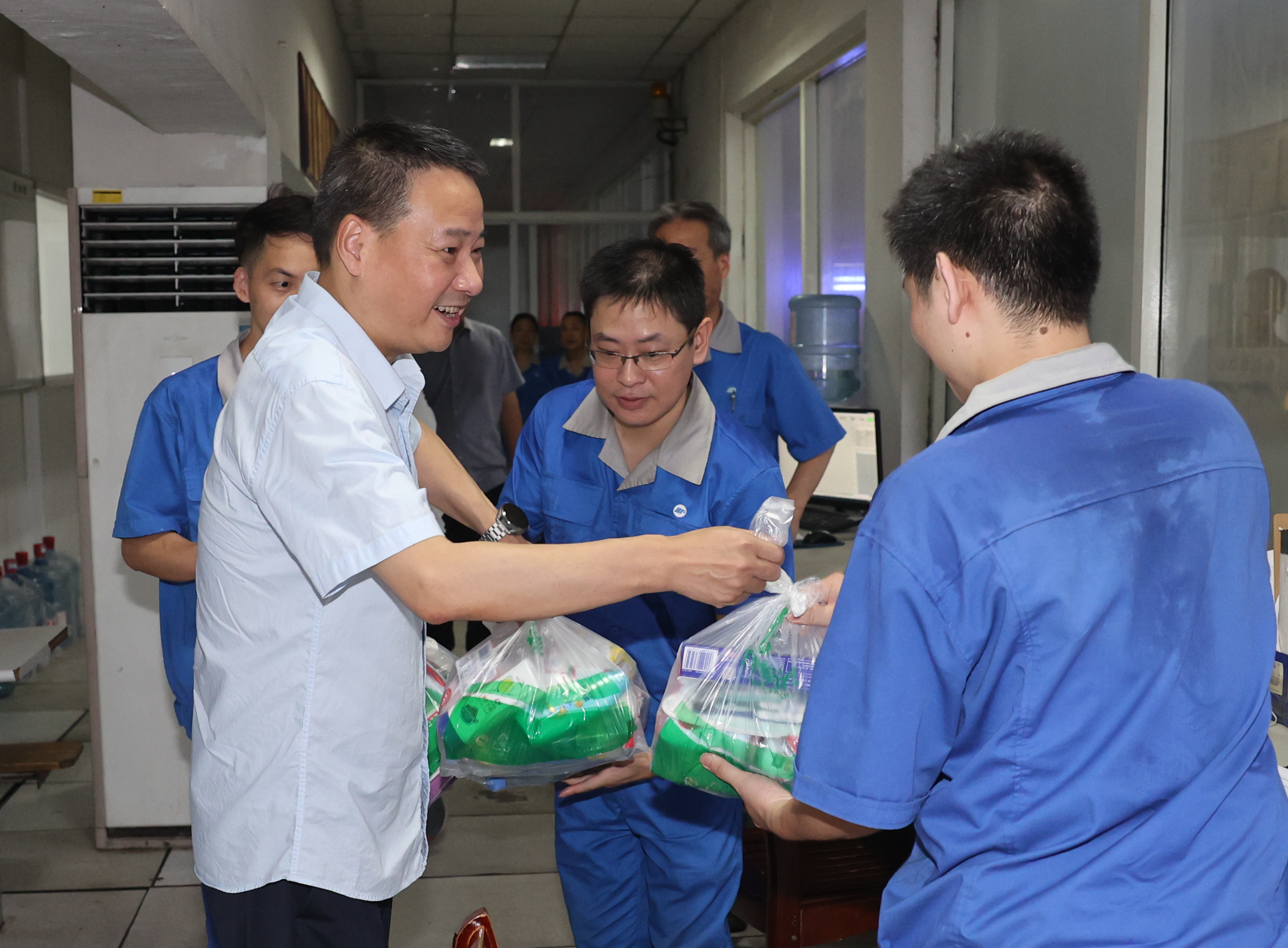 盛夏酷暑,骄阳似火。7月31日,市产业集团党委副书记、副总经理孟春华一行深入金年会特纸第七造纸分厂,走访慰问奋战一线的基层工作者,为他们送上清凉消暑用品,并表示慰问和敬意。
